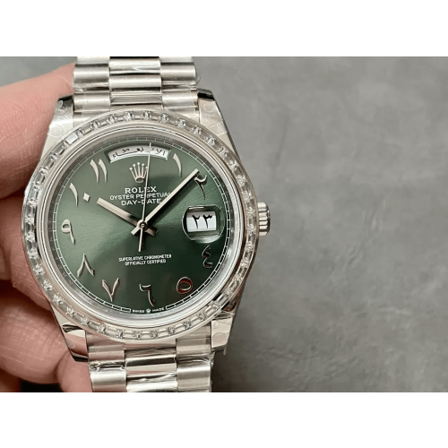 GM공장 V3 롤렉스 데이데이트 그린 아랍 다이얼 바게트 다이아 베젤 m228236