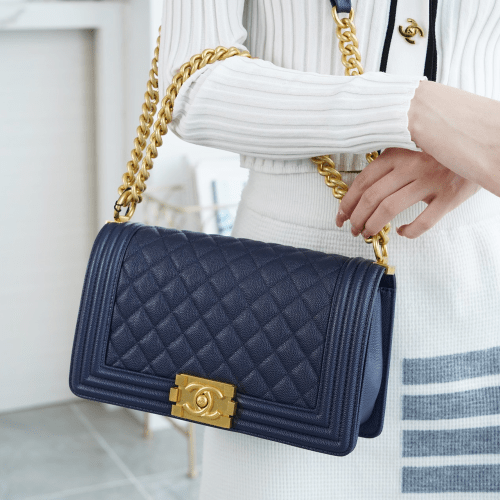 팬더샵 샤넬 보이백 캐비어 다크 블루 금장 미디움