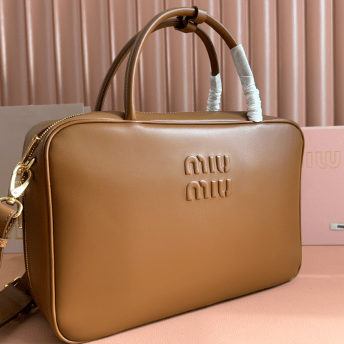 미우미우 BEAU 레더 토트백 라이트 브라운 5bb117