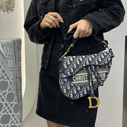 디올 미디엄 새들 스트랩 백 오블리크 자카드 패브릭