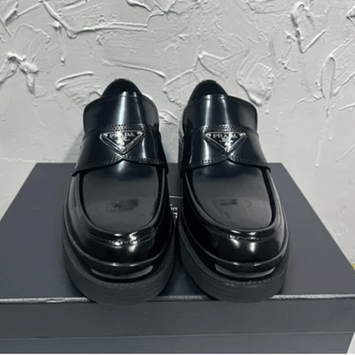 프라다 삼각 로고 초콜릿 브러시드 가죽 로퍼 2DE127