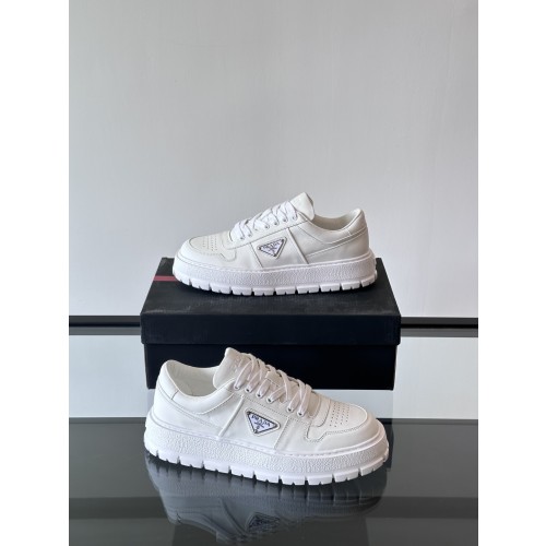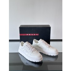 프라다 패딩 나파 레더 레이스업 스니커즈 화이트