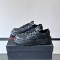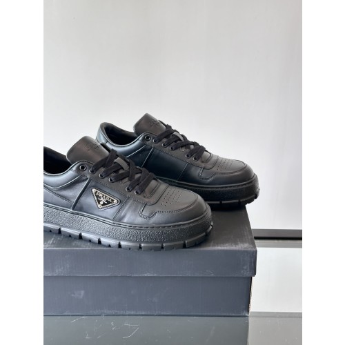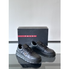 프라다 패딩 나파 레더 레이스업 스니커즈 블랙