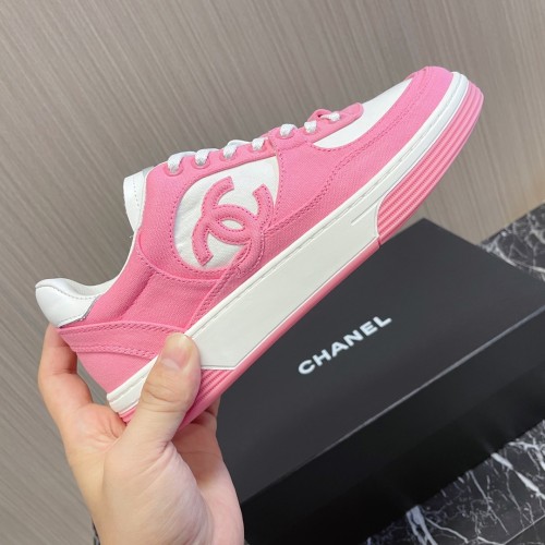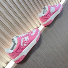 샤넬 스웨이드 키드스킨 & 핑크 화이트 스니커즈