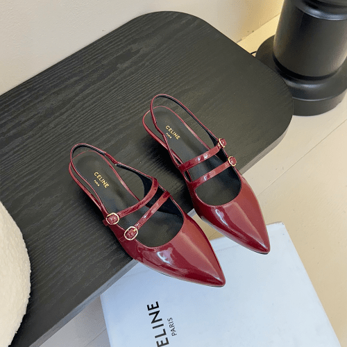 셀린느 25SS 오픈 버건디 유광 레더 샌들